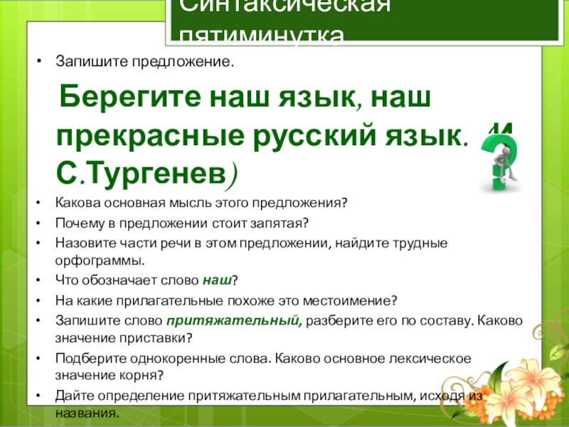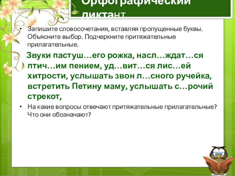 Указание на принадлежность предмета кому (чему)-либо: мой друг, твоя книга