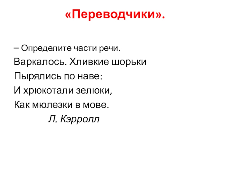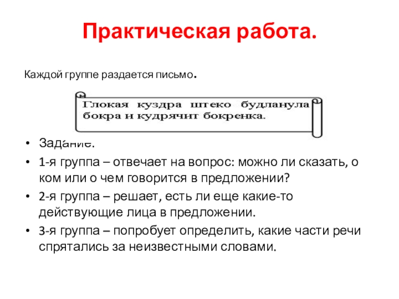 3-я группа – попробует определить, какие части речи спрятались за неизвестными словами.