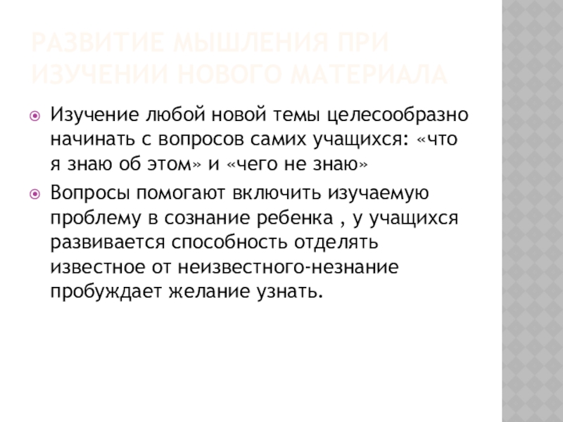 с вопросов самих учащихся: «что я знаю об этом» и «чего не знаю»