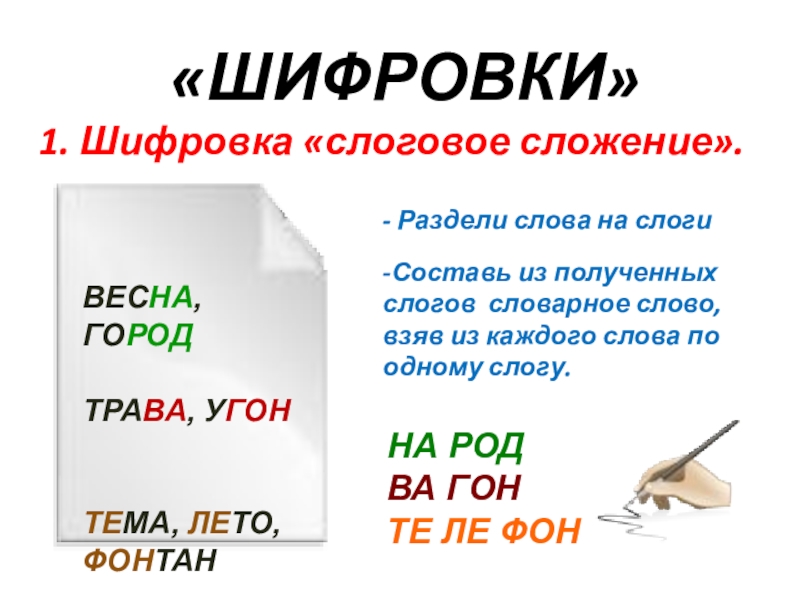 -Составь из полученных слогов словарное слово, взяв из каждого слова по одному слогу.