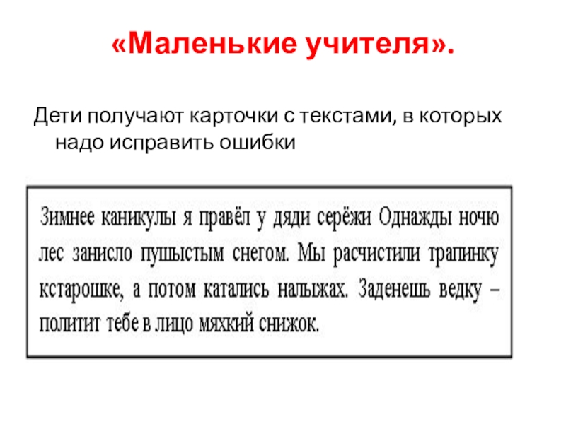 Дети получают карточки с текстами, в которых надо исправить ошибки