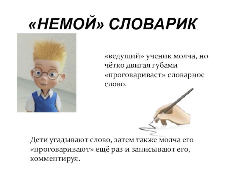 Слайд 8 «НЕМОЙ» СЛОВАРИК.