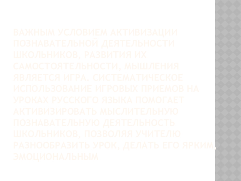 игра. Систематическое использование игровых приемов на уроках русского языка помогает активизировать мыслительную познавательную деятельность школьников, позволяя учителю разнообразить урок, делать его ярким, эмоциональным