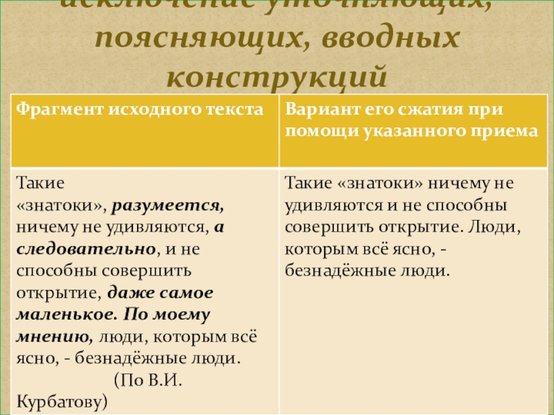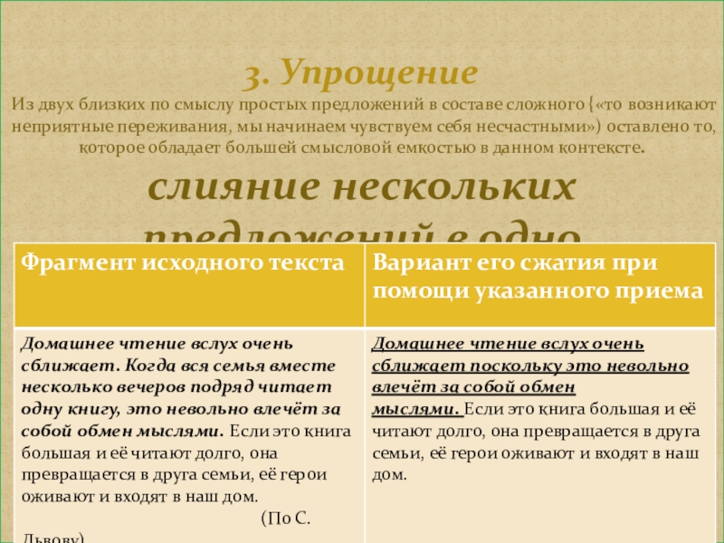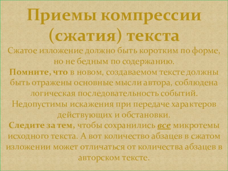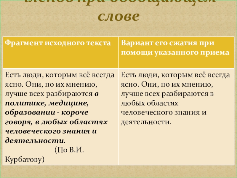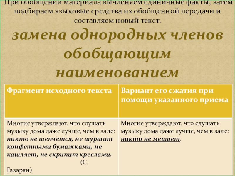 свёртывание исходной информации за счёт обобщения (перевода частного