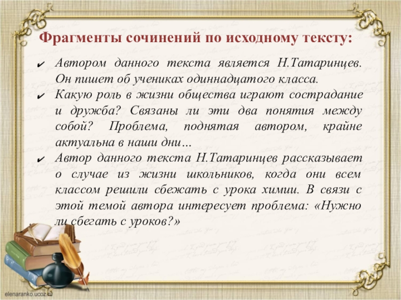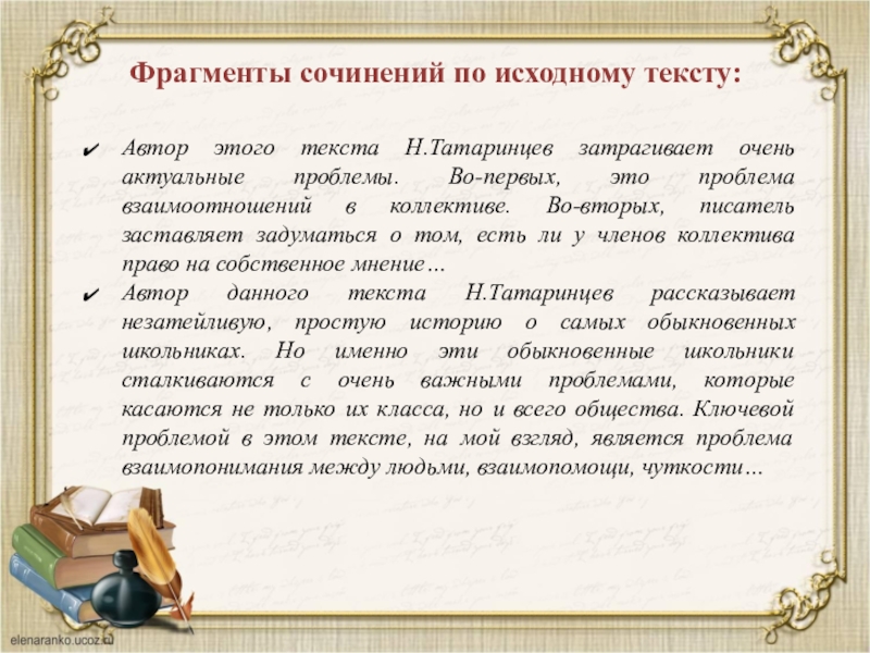 Слайд 9Фрагменты сочинений по исходному тексту: