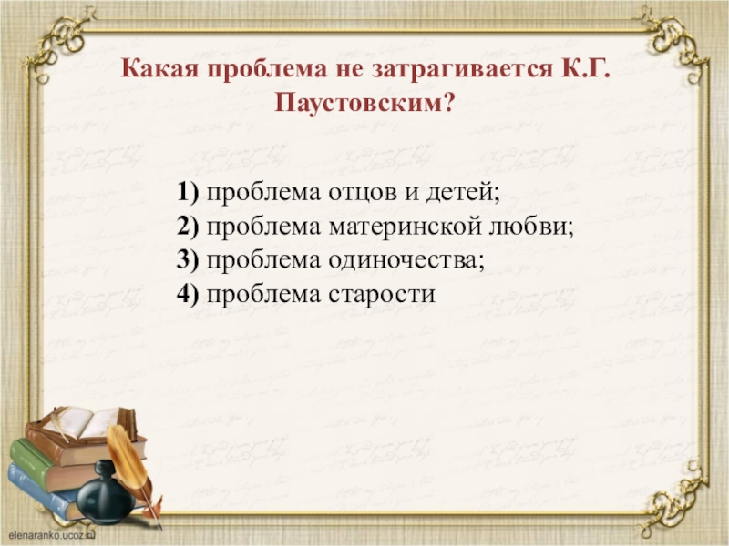 Слайд 12Какая проблема не затрагивается К.Г.Паустовским?