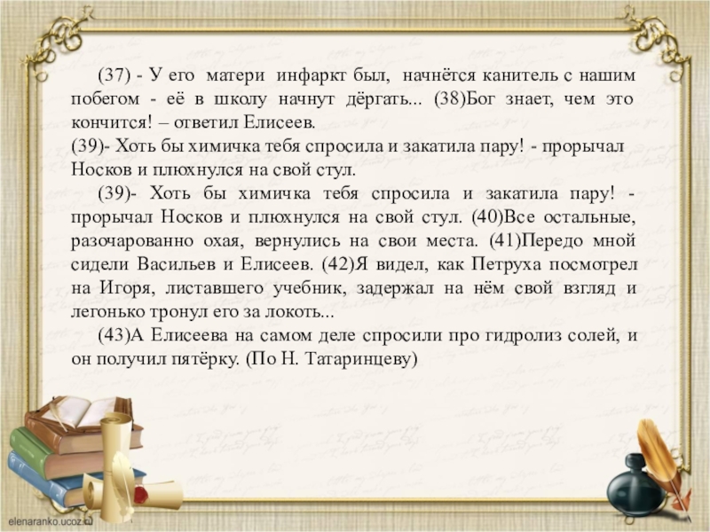 (43)А Елисеева на самом деле спросили про гидролиз солей, и он получил пятёрку. (По Н. Татаринцеву)