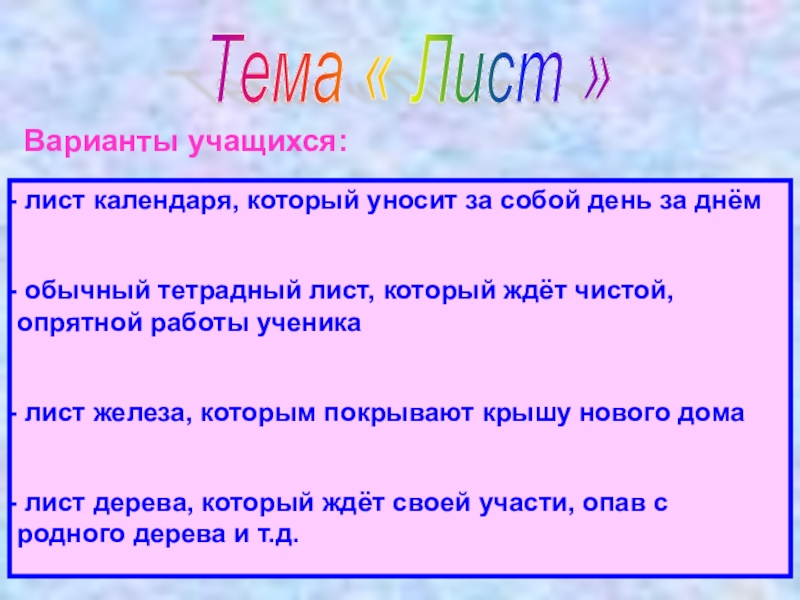 Это сайт презентаций, где можно хранить и обмениваться своими презентациями, докладами, проектами, шаблонами в формате PowerPoint с другими пользователями. Мы помогаем школьникам, студентам, учителям, преподавателям хранить и обмениваться учебными материалами.