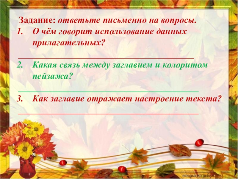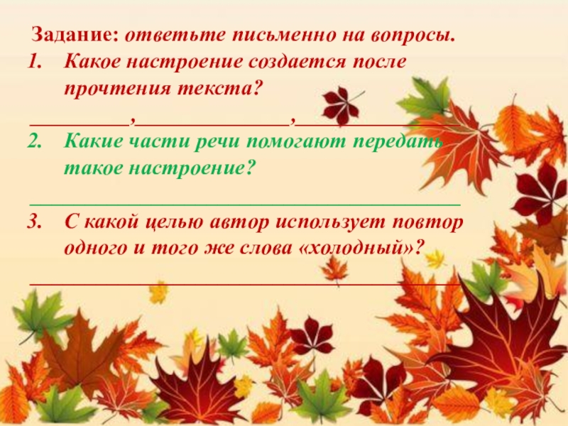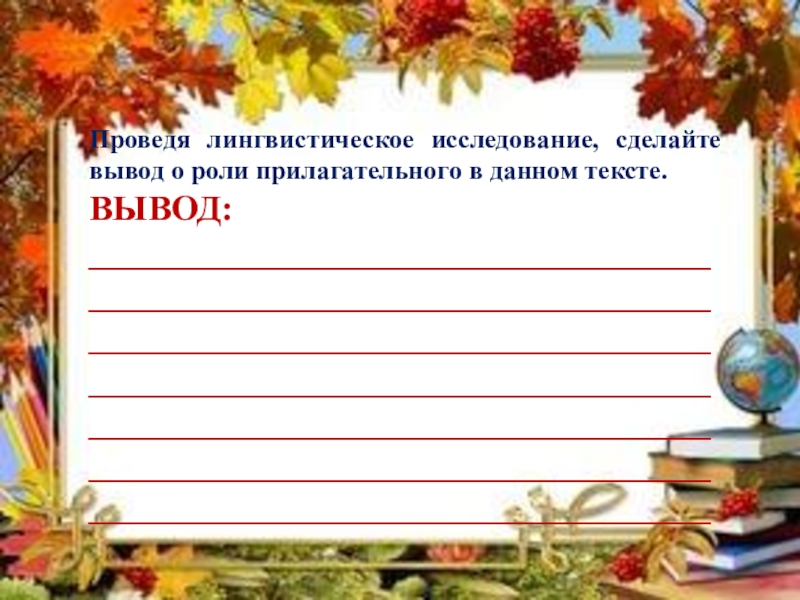 Слайд 10Проведя лингвистическое исследование, сделайте вывод о роли прилагательного в данном тексте.