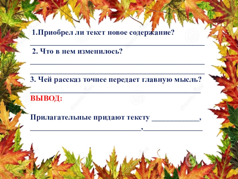 Слайд 15 1.Приобрел ли текст новое содержание?