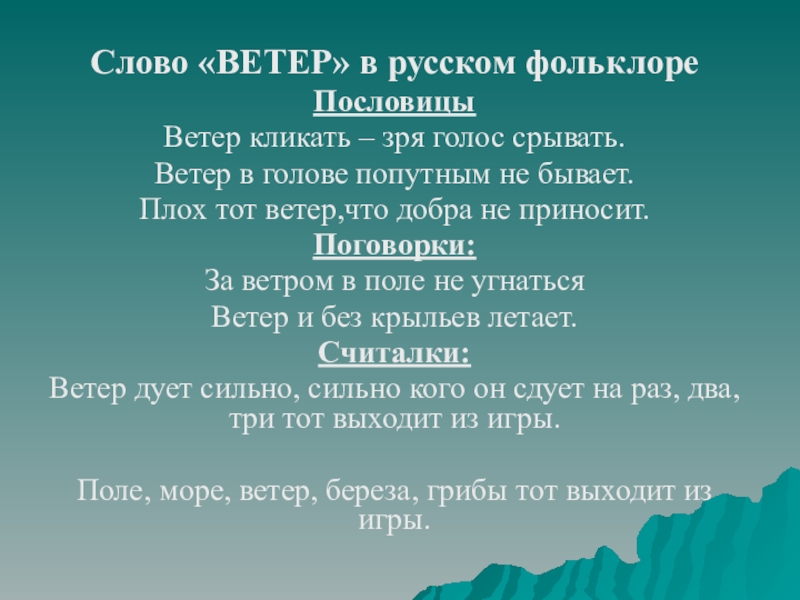 Слайд 10Слово «ВЕТЕР» в русском фольклоре