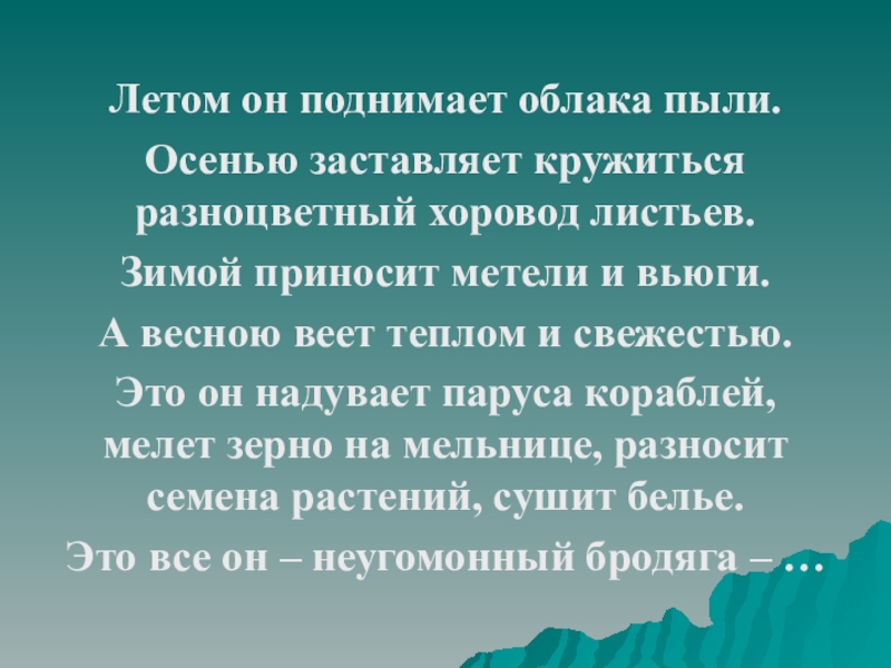 Это он надувает паруса кораблей, мелет зерно на мельнице, разносит семена растений, сушит белье.