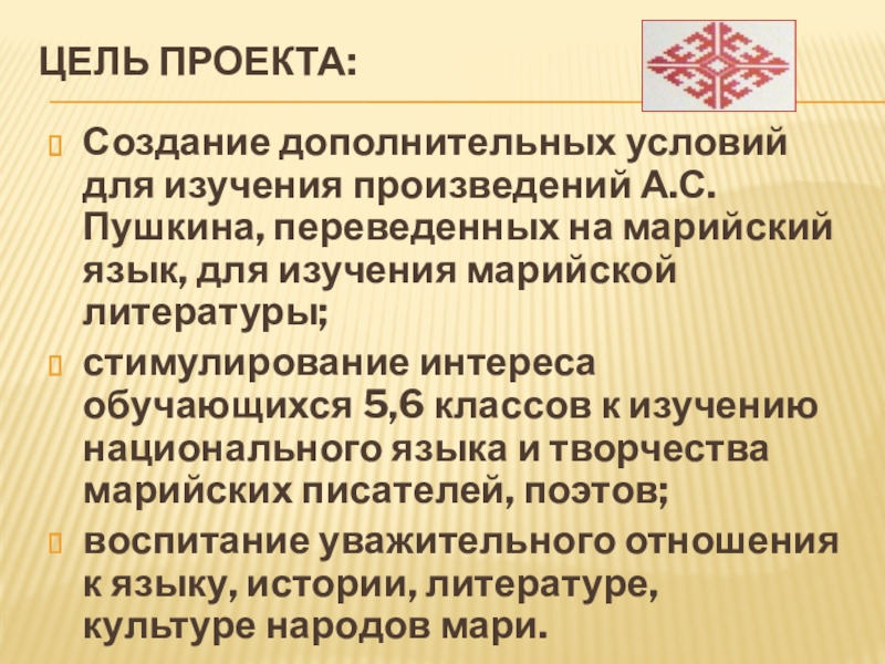 стимулирование интереса обучающихся 5,6 классов к изучению национального языка и творчества марийских писателей, поэтов;