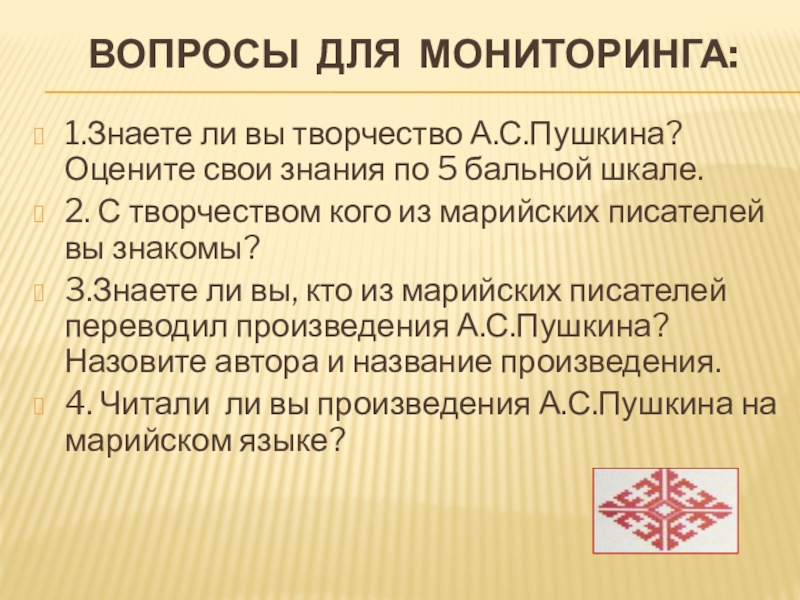 4. Читали ли вы произведения А.С.Пушкина на марийском языке?