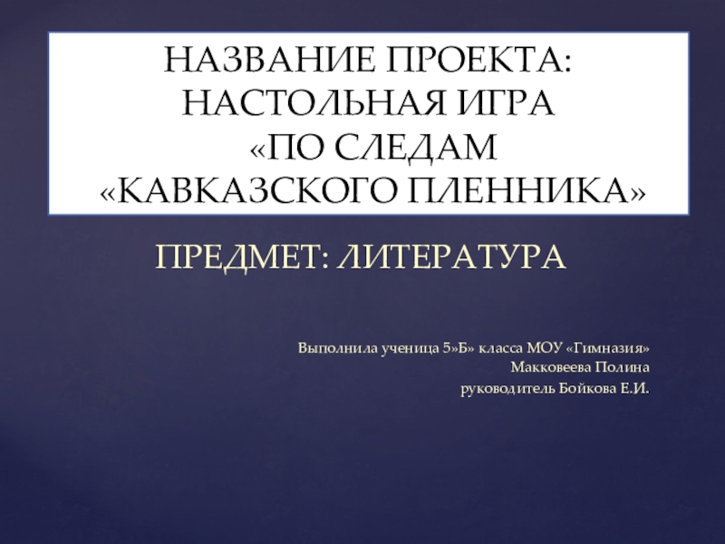 «КАВКАЗСКОГО ПЛЕННИКА»