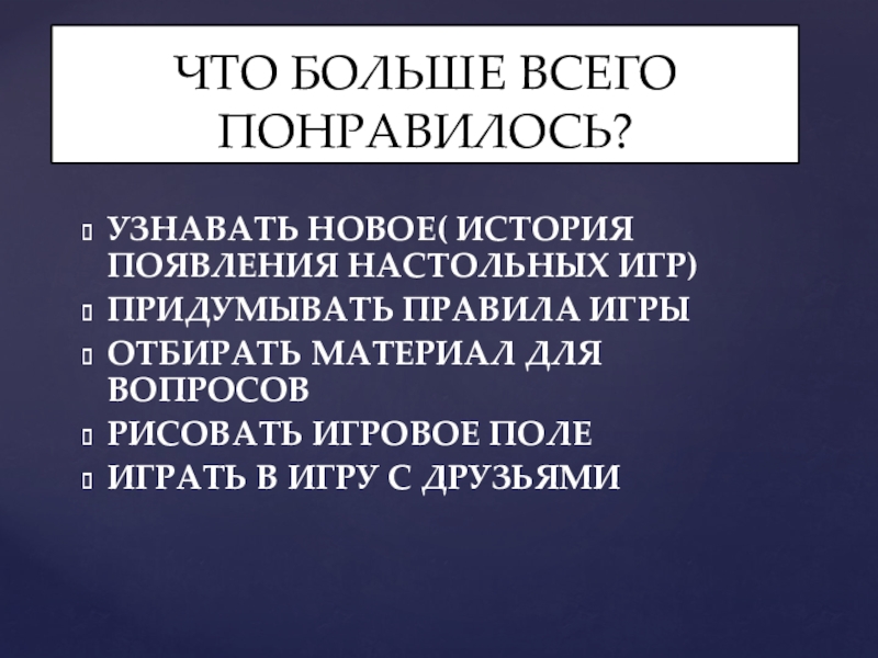 ЧТО БОЛЬШЕ ВСЕГО ПОНРАВИЛОСЬ?