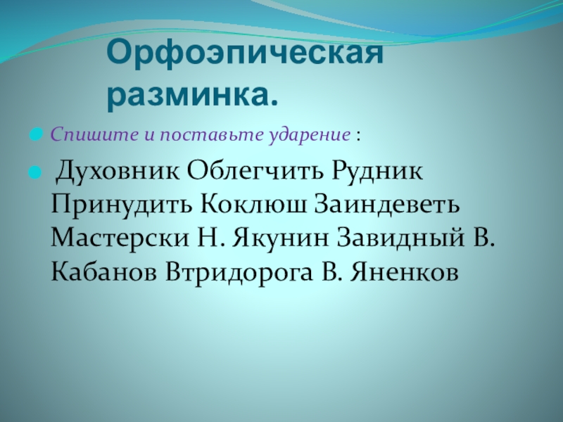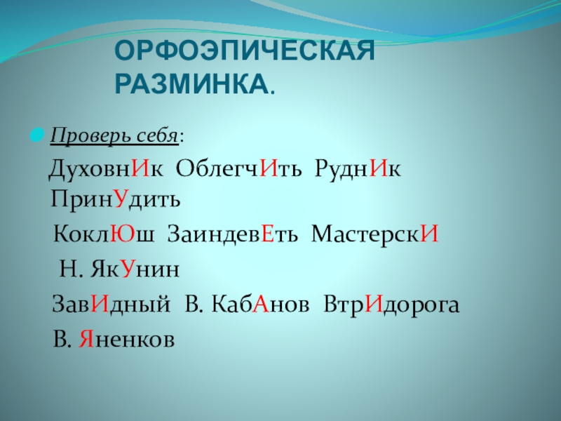 Слайд 16ОРФОЭПИЧЕСКАЯ РАЗМИНКА.