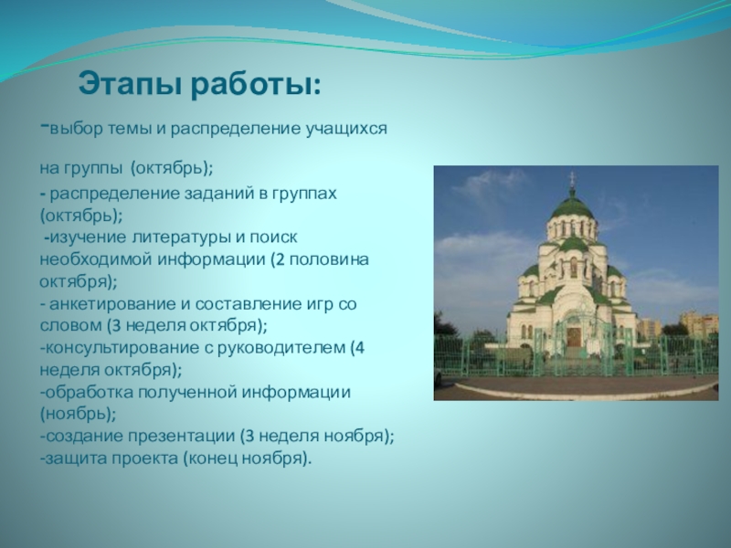 -изучение литературы и поиск необходимой информации (2 половина октября);