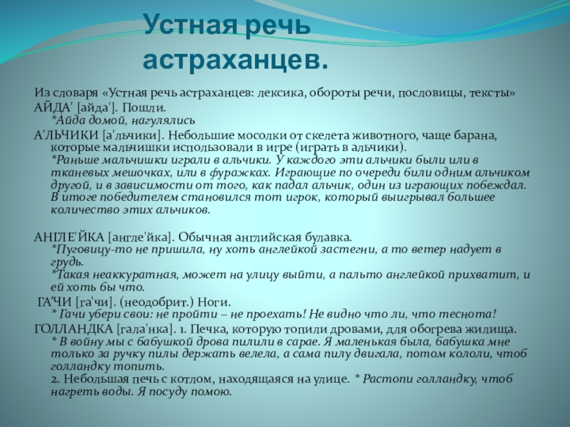 Из словаря «Устная речь астраханцев: лексика, обороты речи, пословицы,