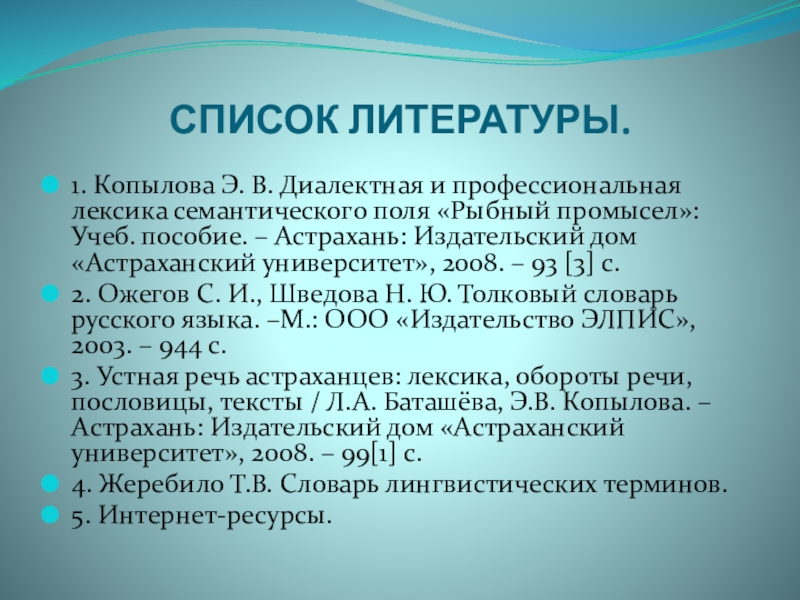 1. Копылова Э. В. Диалектная и профессиональная лексика семантического поля