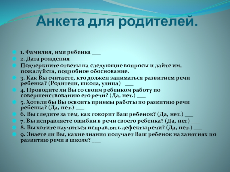 8. Вы хотите научиться исправлять дефекты речи? (Да, нет.) ___