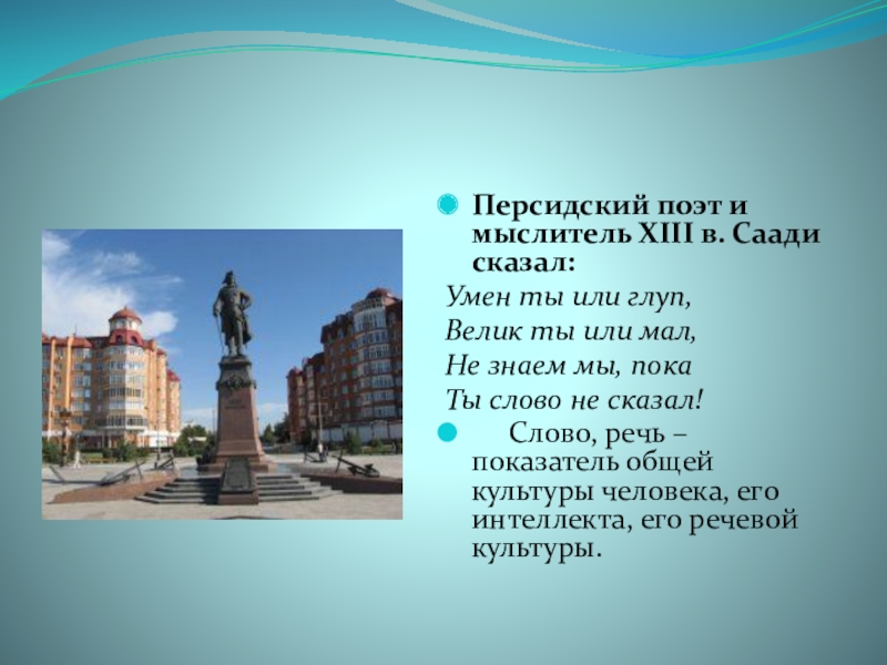 Слайд 7Персидский поэт и мыслитель XIII в. Саади сказал: