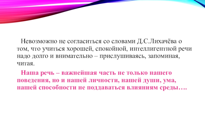 Слайд 17 Невозможно не согласиться со словами Д.С.Лихачёва о том, что учиться хорошей,
