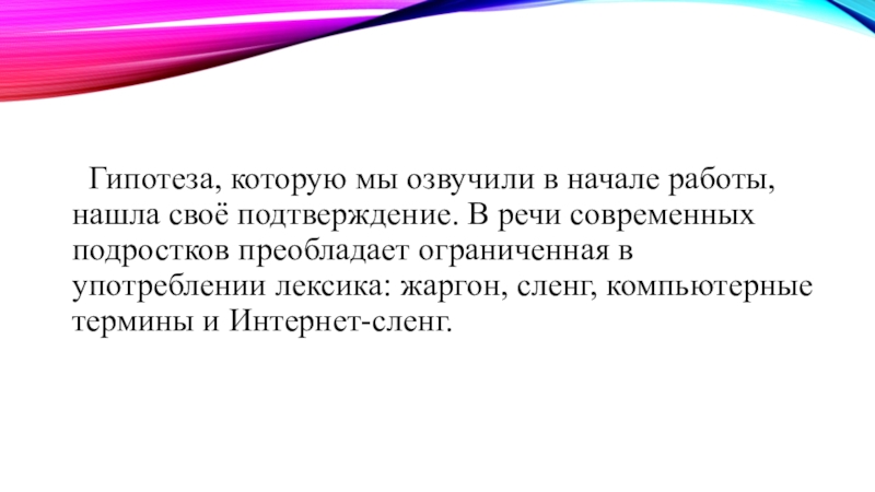 тема не раскрывается. Работа над проектом позволит выяснить распространенность сленга, Интернет-терминов и обоснованность их использования молодыми людьми.