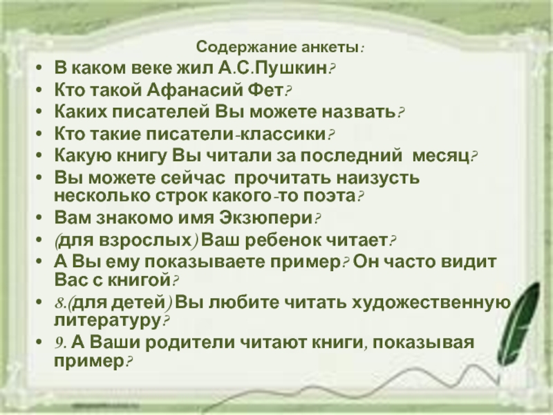 Это сайт презентаций, где можно хранить и обмениваться своими презентациями, докладами, проектами, шаблонами в формате PowerPoint с другими пользователями. Мы помогаем школьникам, студентам, учителям, преподавателям хранить и обмениваться учебными материалами.