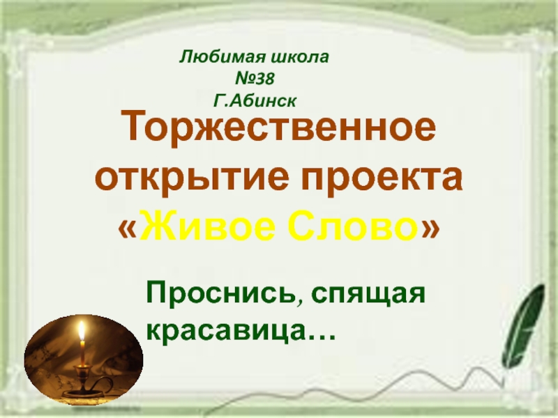 Торжественное открытие проекта «Живое Слово»Проснись, спящая красавица…Любимая школа №38 Г.Абинск