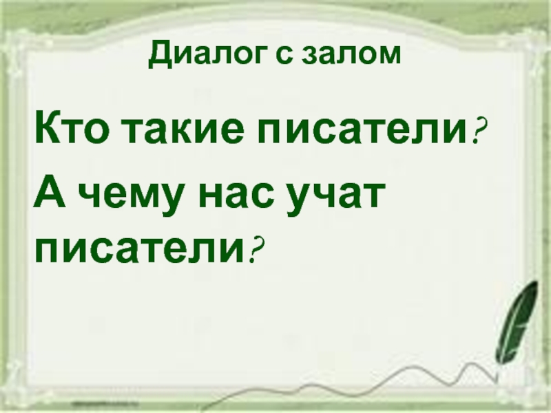 Диалог с заломКто такие писатели? А чему нас учат писатели?