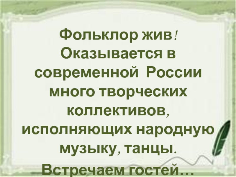 Слайд 9Фольклор жив! Оказывается в современной России много творческих коллективов, исполняющих народную