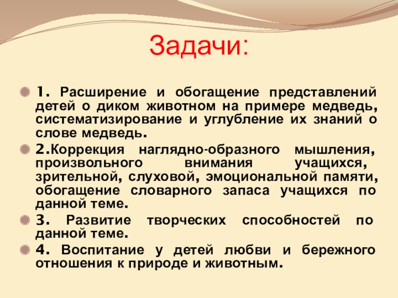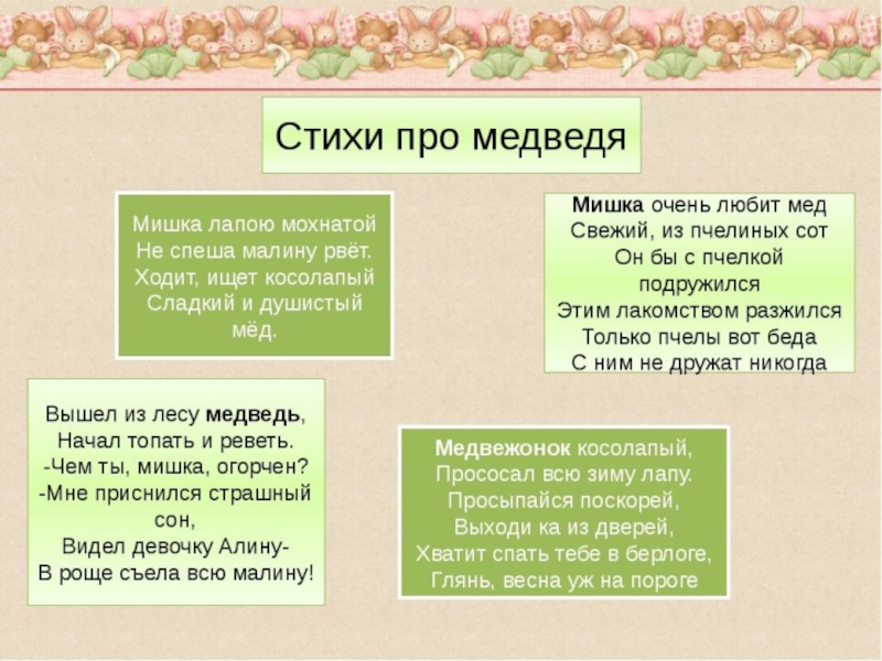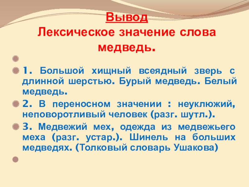 медведь, систематизирование и углубление их знаний о слове медведь.