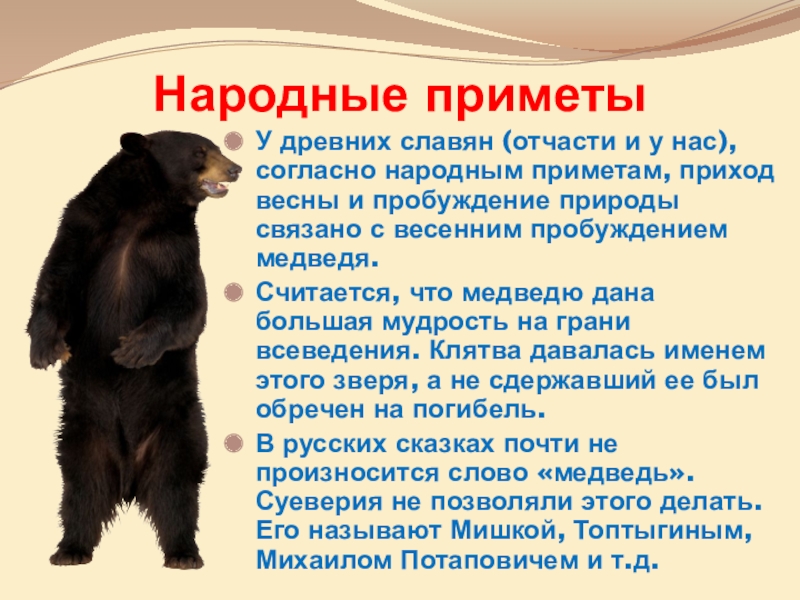 приход весны и пробуждение природы связано с весенним пробуждением медведя.
