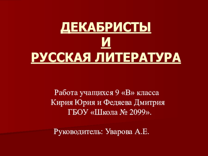 Связь декабристов с русской культурой многообразна. Декабристы оказали воздействие на творчество