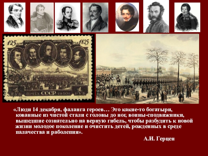 Слайд 3 «Люди 14 декабря, фаланга героев… Это какие-то богатыри, кованные