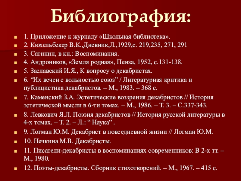 12. Поэты-декабристы. Сборник стихотворений. – М., 1967. – 415 с.