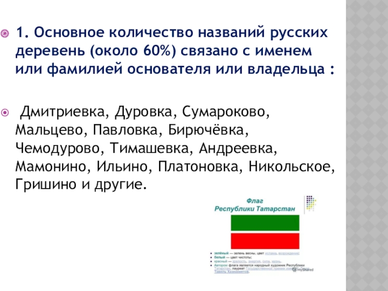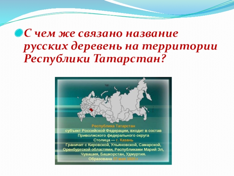 Слайд 11С чем же связано название русских деревень на территории Республики Татарстан?