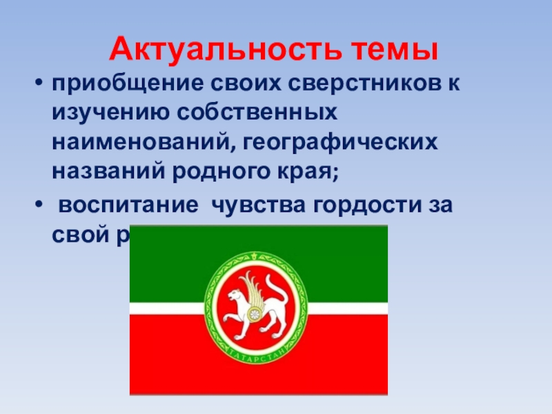приобщение своих сверстников к изучению собственных наименований, географических названий родного