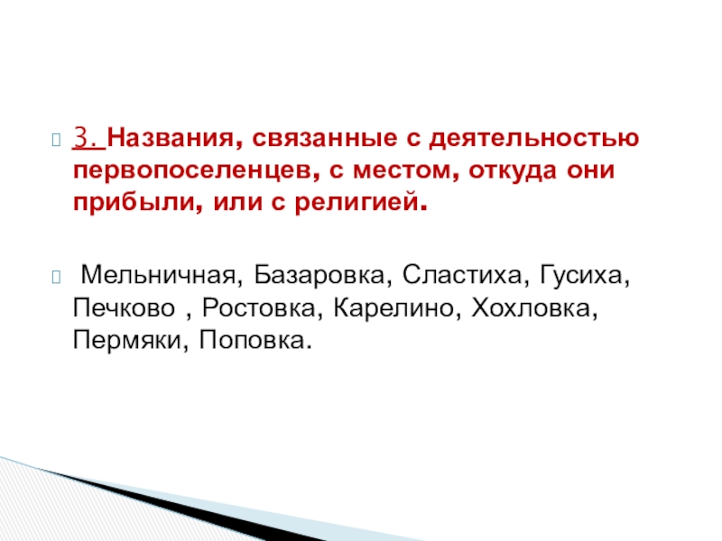 Слайд 143. Названия, связанные с деятельностью первопоселенцев, с местом, откуда они прибыли,