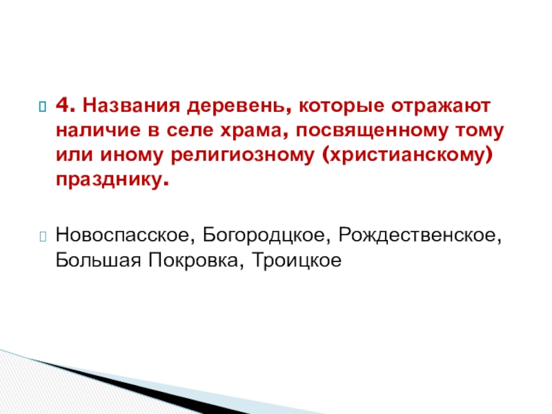 Слайд 154. Названия деревень, которые отражают наличие в селе храма, посвященному тому