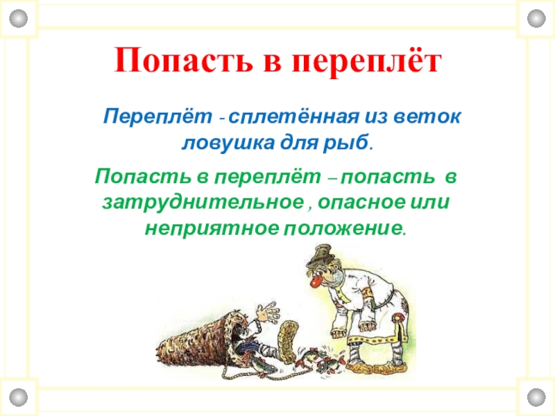 Попасть в переплёт – попасть в затруднительное , опасное или неприятное положение.