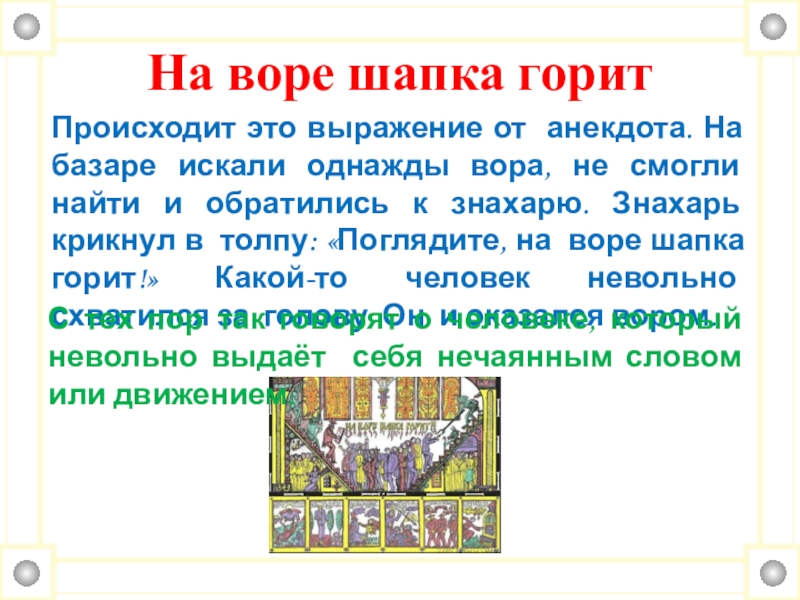 С тех пор так говорят о человеке, который невольно выдаёт себя нечаянным словом или движением.