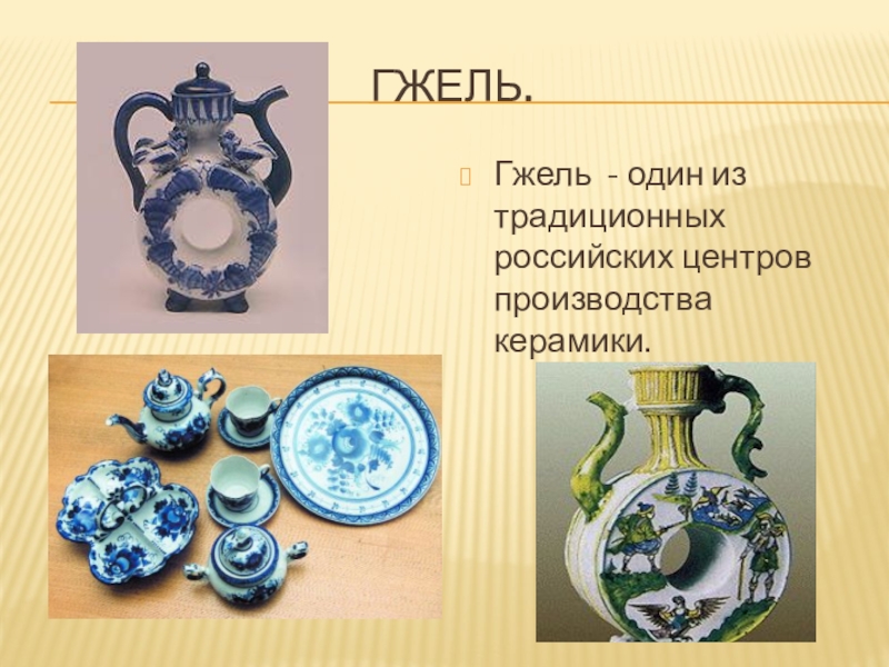 Гжель.Гжель - один из традиционных российских центров производства керамики.