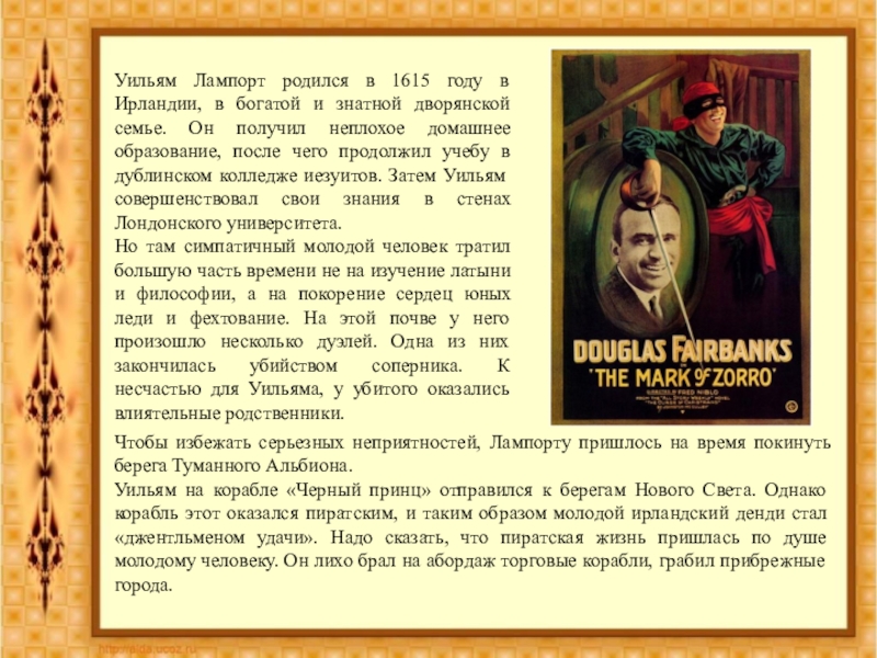 Слайд 21Уильям Лампорт родился в 1615 году в Ирландии, в богатой и