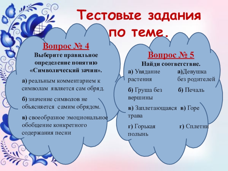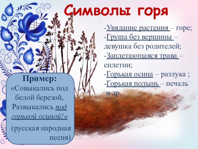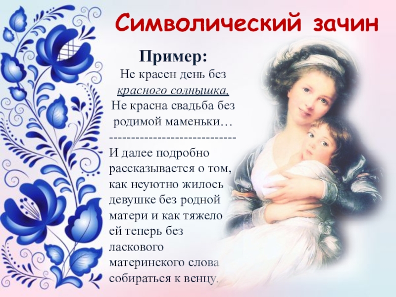 Символический зачин - своеобразное эмоциональное обобщение конкретного содержания песни
