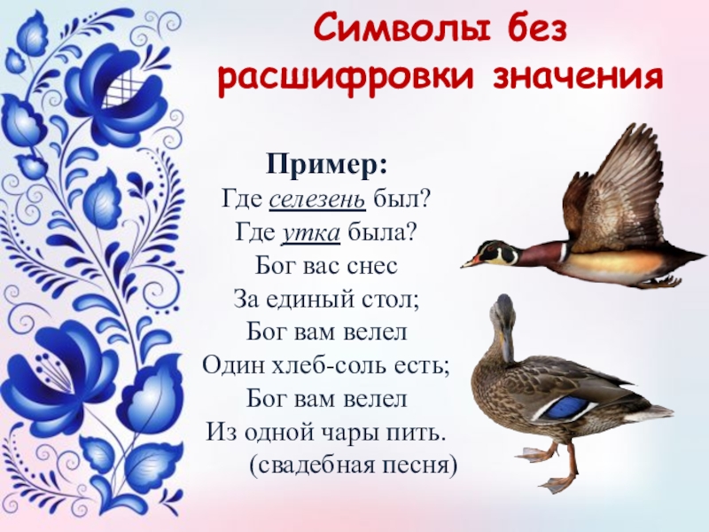 С расшифровкой значения - значение символов не объясняется самим обрядом.