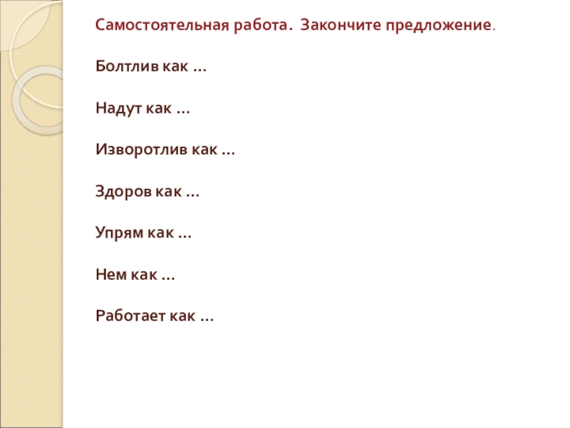 Слайд 11Самостоятельная работа. Закончите предложение.