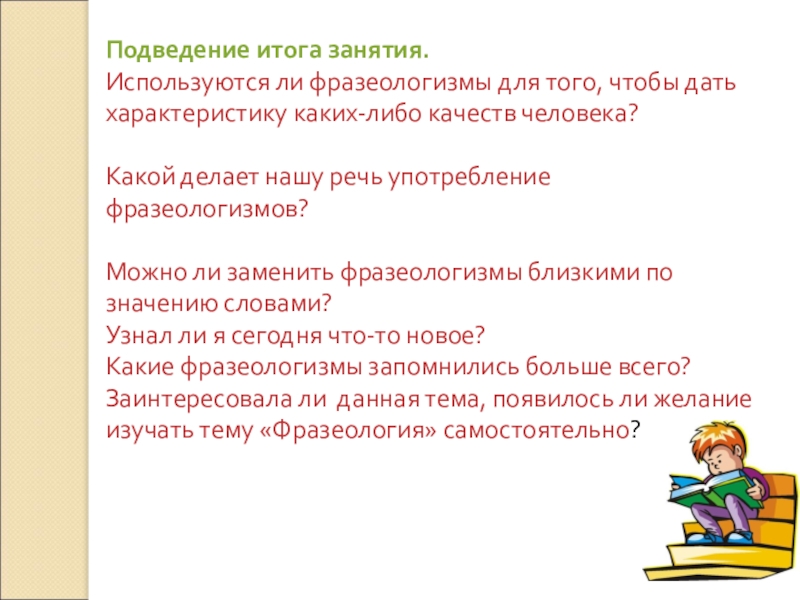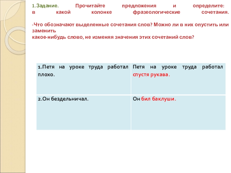 Фразеологизмы – это устойчивые сочетания слов, равные по значению либо одному