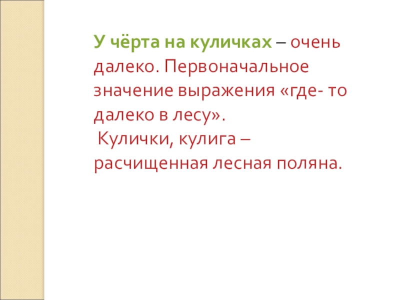Слайд 16У чёрта на куличках – очень далеко. Первоначальное значение выражения «где-